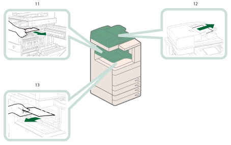 Paper jams may occur in the following parts of the machine. See the applicable section to clear the paper jam.