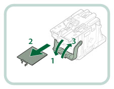 After the cover is closed, the stapler unit may automatically perform a "dry" stapling operation to reposition the staples.