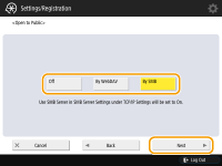 If you want to make the Advanced Box available to the outside as an SMB server, press <By SMB>.
