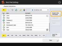 Press <Dest./Fwd. Settings> on the Main Menu  <Register Destinations>.