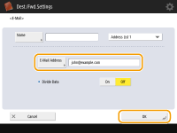 <E-Mail Address>  enter the e-mail address and press <OK>.