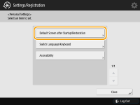 If the machine is configured so that users are required to log in when it starts up (Logging into the Machine), <Default Screen after Startup/Restoration> is displayed as an item in <Personal Settings>. The screen that is displayed after the machine starts up can be set for each user.