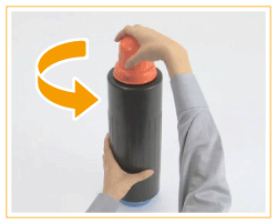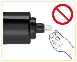 Hold the blue section of the toner cartridge with your left hand and uphold the lower section with your right hand.