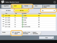 When you press , the <Status Monitor/Cancel> screen appears, allowing you to check the usage history for each function. From this screen, you can also print the usage history for each function, such as copying, printing, or sending e-mail.