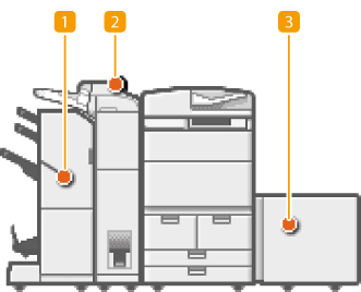 If a paper jam occurs during printing while the stapler is set for operation, do not remove paper in the places other than the locations displayed on the touch panel display. For example, if a paper jam occurs in the main unit, you do not need to remove paper from the finisher where a paper jam has not occurred. If a paper jam in the main unit is cleared, paper inside the finisher will be stapled continuously.
