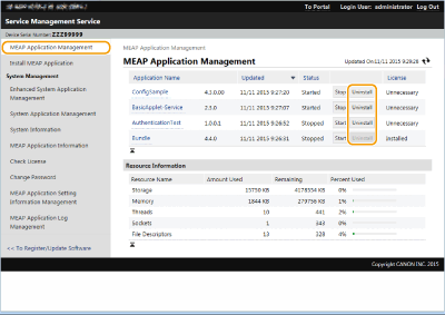 If you uninstall a MEAP application, you may be required to restart the machine. Follow the on-screen instructions and restart the machine.
