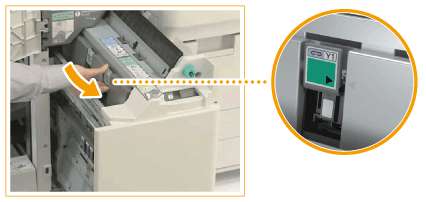 Push the saddle stitcher unit back into the machine, and close the front cover of the finisher.