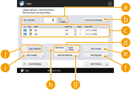 appears as 1, 2, 3... in the order that the documents are scanned, and the copies are printed order. If you want to change the order, press <Clear Selection> in