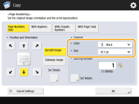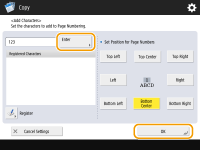 You can attach page numbers when copying. You can adjust the position for page numbers and also select the page format.
