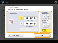 You can finely adjust the horizontal and vertical position with <Fine Adjustment>. Press <X> for the horizontal position adjustment and <Y> for the vertical position adjustment, and enter the values to move the positions.