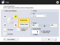 As shown in the illustrations below, if the document is placed in the portrait orientation when facing you, select <Upright Image>, if placed in the landscape orientation, select <Sideways Image>.