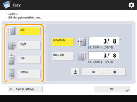 If you enter a number smaller than 0, the margin is set on the opposite side of the position specified in step 4. Use this if you want to narrow the margin width when copying a document that already has margins.