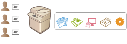 This method uses an IC card for user authentication. To log in, users simply touch an IC card to the reader, eliminating the need to remember a user name and password. Optional equipment is required in order to use this function. For more information, contact your local authorized Canon dealer.