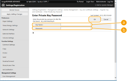 ![]() [Key Name]Use alphanumeric characters to enter the name of the key that was registered to the machine.