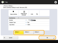 You can recall the destinations specified in the past. Their scan settings such as density are also recalled at the same time.