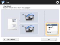 This function enables you to copy both the front and back of an ID card onto a single sheet of paper. This function is useful when copying ID cards (identification cards) such as driver's licenses, because the orientation and print position of the images of both sides of the ID card are aligned automatically according to the paper size.