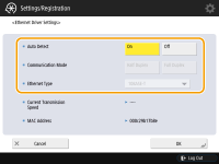 Normally, press <On> in <Auto Detect>. The communication system and Ethernet type are detected and automatically configured.