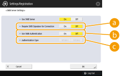 To set so that an SMB packet signature is requested when connecting to the SMB server, press <On>.