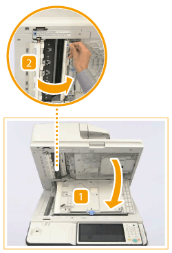 Open the scanning area cover, and then open the inside cover.