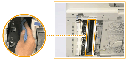 Clean the left side of the white rubber roller.