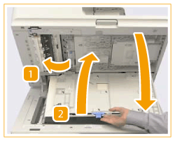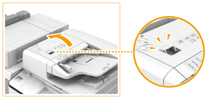 Pull the lever above the feeder, and open the scanning area cover.