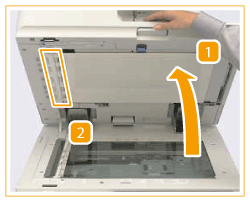 Gently open the scanning area cover so as not to damage the platen glass.