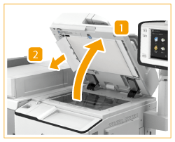 Scanning is stopped and the message is displayed on the screen. Follow the message and start operation. To set to not notify with a message, press <Options> on the Copy/Fax/Scan Basic Features screen