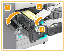 Gently pull out the paper on the right side of the fixing unit.