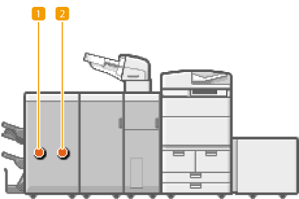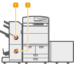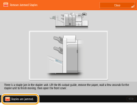 If a staple jam occurs, the <Staples are jammed.> message appears on the touch panel display, along with the location of the staple jam and solutions. If it is difficult to find solutions on the display, see the link corresponding to the staple jam location in