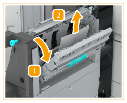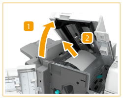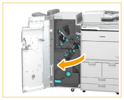 Open the front cover of the finisher.