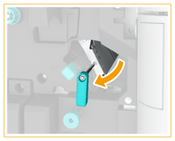 Open the right cover of the saddle stitcher unit (F-C5).