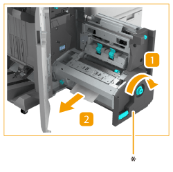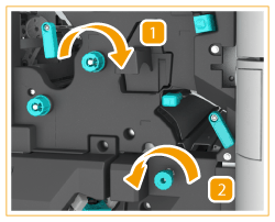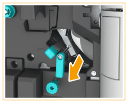 If the Booklet Trimmer-D1 is attached, turning the dial feeds the jammed paper to the feeding belt of the booklet trimmer.