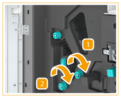 If the Document Insertion Unit-N1 is adjacently attached to the finisher, part of the document insertion unit may interfere with the finisher when clearing jams. Lift up the document insertion unit before removing jams from the finisher.