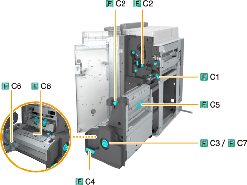 Pull out the saddle stitcher unit (F-C4).