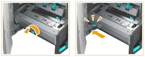 Push the saddle stitcher unit and close the front cover of the finisher.