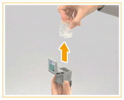 Hold both sides at the top of the empty staple cartridge.