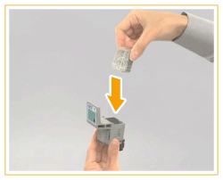 Insert the two staple cases into the saddle stitcher unit.