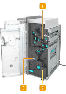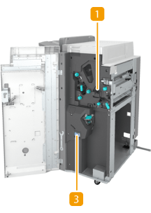 To replace the staple cartridge of the stapler unit or saddle stitcher unit, see Replacing the Staple Cartridge.