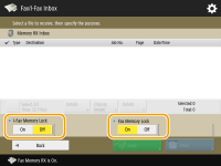 Select <Memory RX Inbox> and set <Fax Memory Lock> to <On>.