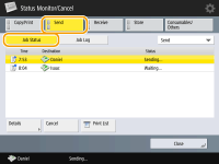 Press <Send> <Job Status>.