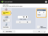 ![]() If the size displayed in <Original Size> is different from the size of the book you check, press <Change> to select the size.