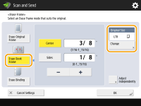 When scanning documents that are smaller than the scanning size, frame lines of the documents may appear in the scanned image. When scanning a thick book, dark borders may appear. This function enables you to erase these frame lines and dark borders. You can also erase punch holes in the documents.