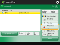 Specify the destination on the Scan Basic Features screen. Scan Basic Features Screen