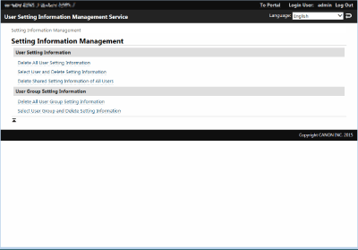 Deleting the setting information for all user groups