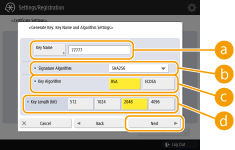 Select the key algorithm. If <RSA> is selected, <Key Length (bit)> is displayed as a setting item for . If <ECDSA> is selected, <Key Type> is displayed instead.