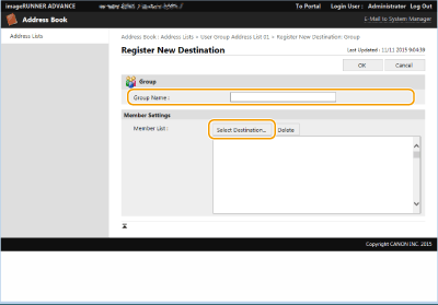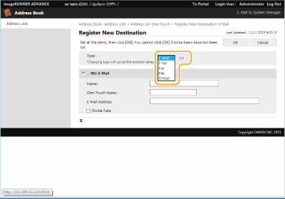 You can use the Remote UI to register destinations in the Address Book. You can also check the registered details and edit the Address Book.