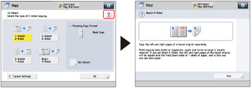 Any time appears on the touch panel display, you can check a detailed explanation of the function and its settings.