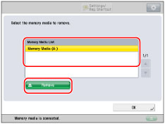 Make sure you follow the following procedure to remove the memory media from the machine. If the memory media is removed from the machine in a way other than the procedure below, the memory media, the machine, and the Multimedia Reader/Writer-A3 may be damaged.