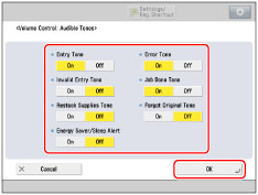 on the control panel enables you to set various tones to sound, according to the operations performed or status of the device.|