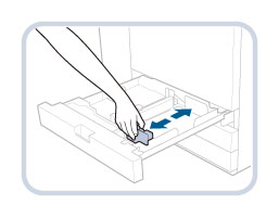 Slide the front guide until it clicks into place. If the front guide is not adjusted properly for the paper size loaded in the paper drawer, the correct paper size may not appear on the touch panel display.